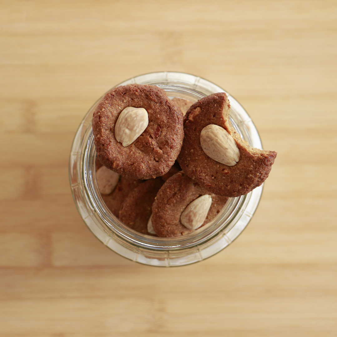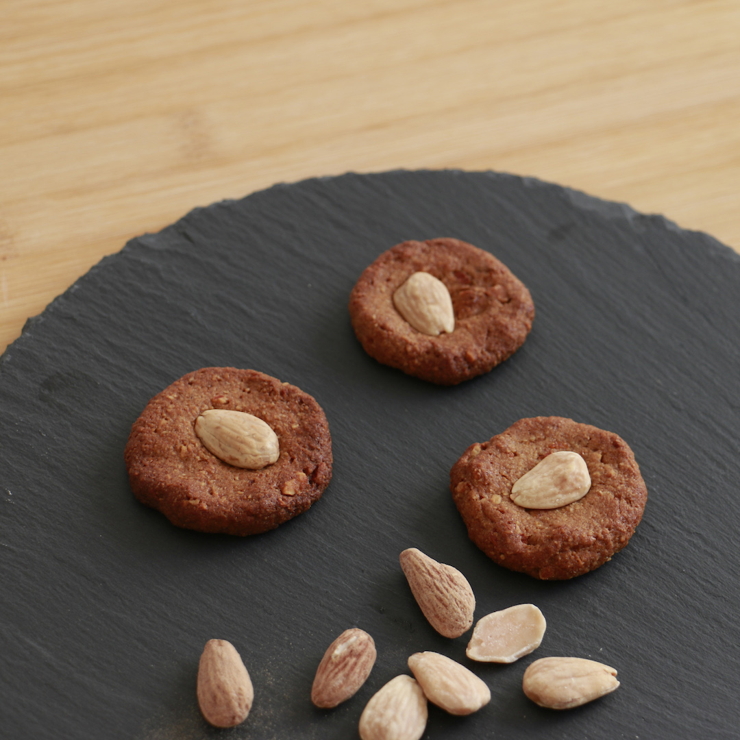 Ingredientes: Farinha de amêndoa*, farinha de arroz, amêndoa, linhaça*, açúcar de coco*, óleo de coco*, sal rosa dos himalaias e laranja.