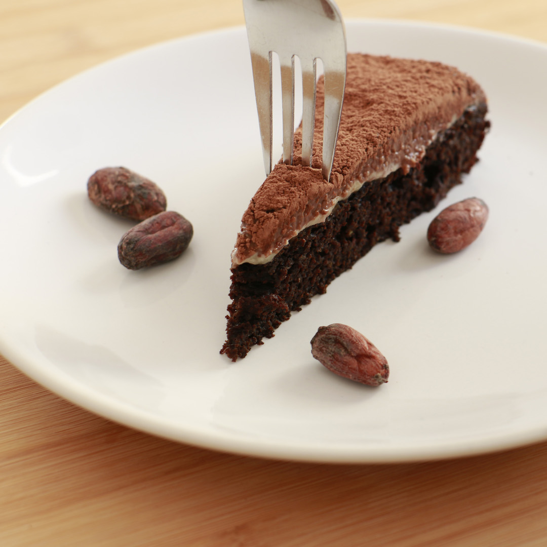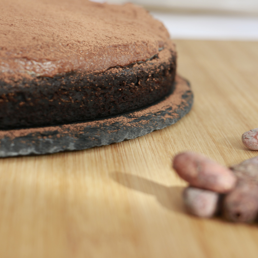 Ingredientes: Farinha de arroz, farinha de alfarroba*, farinha de beterraba*, polvilho doce, cacau cru*, pepitas cacau, bicarbonato de sódio, goma xantana, linhaça*, açúcar de coco, vinagre, óleo de coco*, sal rosa dos himalaias, bebida de aveia*, castanha de caju, açúcar de demerara, leite de coco, flocos de aveia sem glúten.